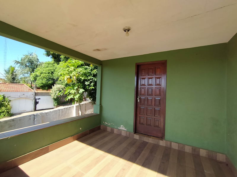 3 quartos, 2 sala, cozinha, 2 banheiros, garagem, área de serviço e varanda na frente da casa.