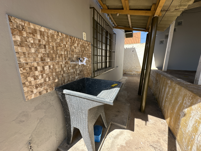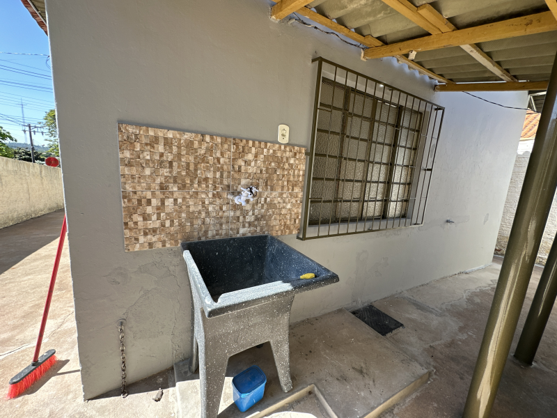 Casa com 03 quartos sendo uma suíte, 02 salas, cozinha, banheiro, garagem, área de serviço e dispensa externa.